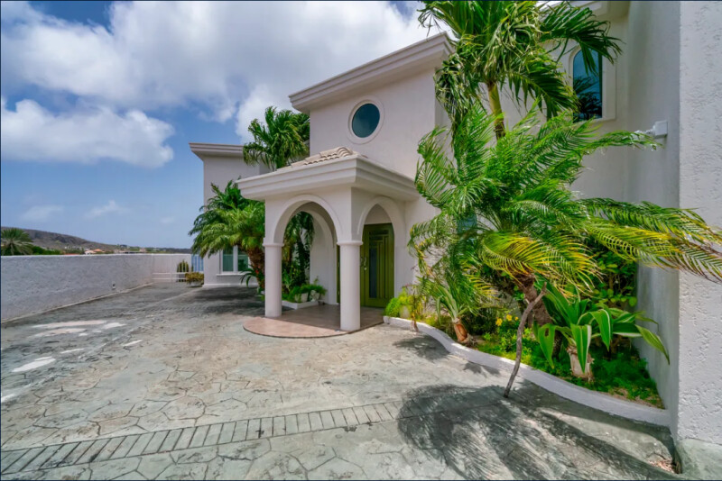 The four bedroom-, 4.5 bathroom-, three story-, 481 m²property lies on a 700 m² waterfront lot that faces both the other waterfront villas and overlooks the Jan Sofat Marina, Spanish Water and the scenic Tafelberg hill.