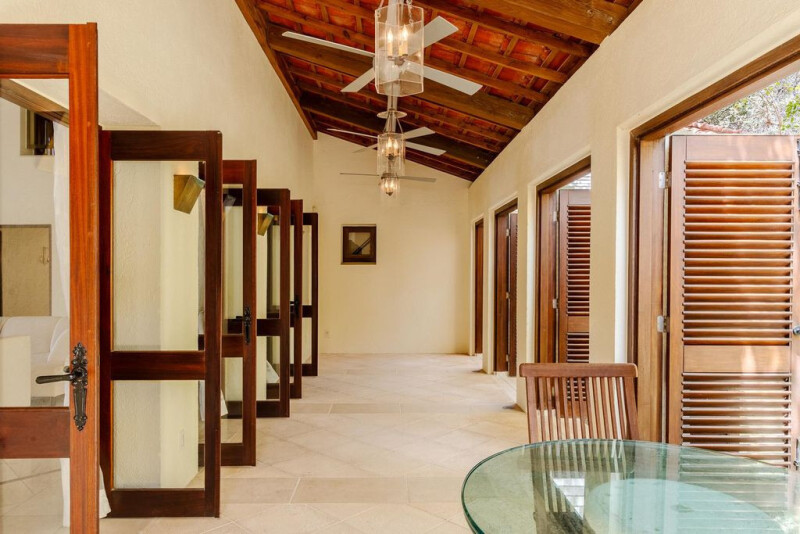 Situada en el elegante Santa Barbara Resort, hogar del campo de golf de 18 hoyos Pete Dye, puertos deportivos y el recientemente inaugurado Sandals Royal, se encuentra Villa Seru Boca. La primera propiedad construida en Seru Boca Estate, establece el estándar para esta exclusiva comunidad residencial. La propiedad de 6 dormitorios y 7,5 baños diseñada con la arquitectura típica de la isla cuenta con vistas panorámicas y de la bahía, una piscina infinita, un muelle, una bahía y vistas panorámicas. La residencia principal de dos plantas, las dependencias y el garaje se encuentran en un gran terreno inclinado de 4.330 m². Las puertas electrónicas se abren a un camino sinuoso que conduce al estacionamiento para huéspedes antes de llegar al majestuoso camino circular rodeado de palmeras. Aquí se encuentra un garaje independiente para 2-3 coches con trastero. La llamativa fachada le da la bienvenida al elegante gran salón de la casa principal. En diseño colonial holandés este 9m. La sala alta al aire libre tiene galerías a cada lado. La terraza con vista al agua se conecta con la terraza de la piscina y la terraza con vista a la colina se conecta con un jardín. La sala de estar con piso de mármol se conecta con la cocina, el comedor y el vestíbulo. La caprichosa cocina cuenta con encimeras de mármol, elaborados gabinetes de madera, fregadero, estufa de gas, pisos de madera y vistas enmarcadas desde sus ventanas. El comedor también se abre a un pasillo abierto que conduce a los dormitorios. En el pasillo se encuentra el baño de visitas, el lavadero y la escalera hacia el segundo dormitorio superior. Este dormitorio con baño también cuenta con techos con vigas de madera y en el mismo estilo de la sala de estar, cautivadoras vistas al agua desde su terraza cubierta. Además, su baño completo tiene bañera con ducha, espacio para guardarropas y una vista única a la sala de estar de abajo. Un pasillo abierto conduce al tercer dormitorio, cuenta con armarios empotrados y una pared divisoria con puertas corredizas que crean dos espacios separados. Uno accesible desde el jardín delantero y el otro desde el vestíbulo. A continuación se encuentra el cuarto dormitorio en suite con su propio jardín. En su propia ala el dormitorio principal culmina frente al mar con acceso a la piscina, bañera de hidromasaje y muelle. Las puertas se abren a los tocadores para él y para ella a cada lado y conducen a la zona del baño tipo spa con un techo de cristal que cubre la bañera adornada con puertas con contraventanas de madera. En rincones separados se encuentran la cabina de ducha y el WC. El espacio del vestidor sigue y se conecta con el área de dormitorio con vistas cautivadoras de la bahía. Esta habitación también tiene una escalera hacia el área de fitness, actualmente utilizada como almacén, también cuenta con 2 baños completos. La acogedora piscina infinita con escalones está acompañada de una bañera de hidromasaje y una pasarela hacia el muelle. En el lado opuesto se encuentra un espacio para invitados de dos pisos, con un dormitorio con baño en cada piso. Con un estilo similar, las habitaciones quinta y sexta también tienen cautivadoras vistas al agua y al jardín, además de conectarse a la piscina. Villa Seru Boca fue construida sobre las lecciones del pasado, asegurando un clima interior óptimo durante el día y la noche. También están presentes las comodidades modernas, como una unidad de aire acondicionado central y aire acondicionado individual en las habitaciones. La tarifa de HOA para esta comunidad es ANG 1.388,89 por mes. Para obtener más información o programar una visita, contáctenos hoy.